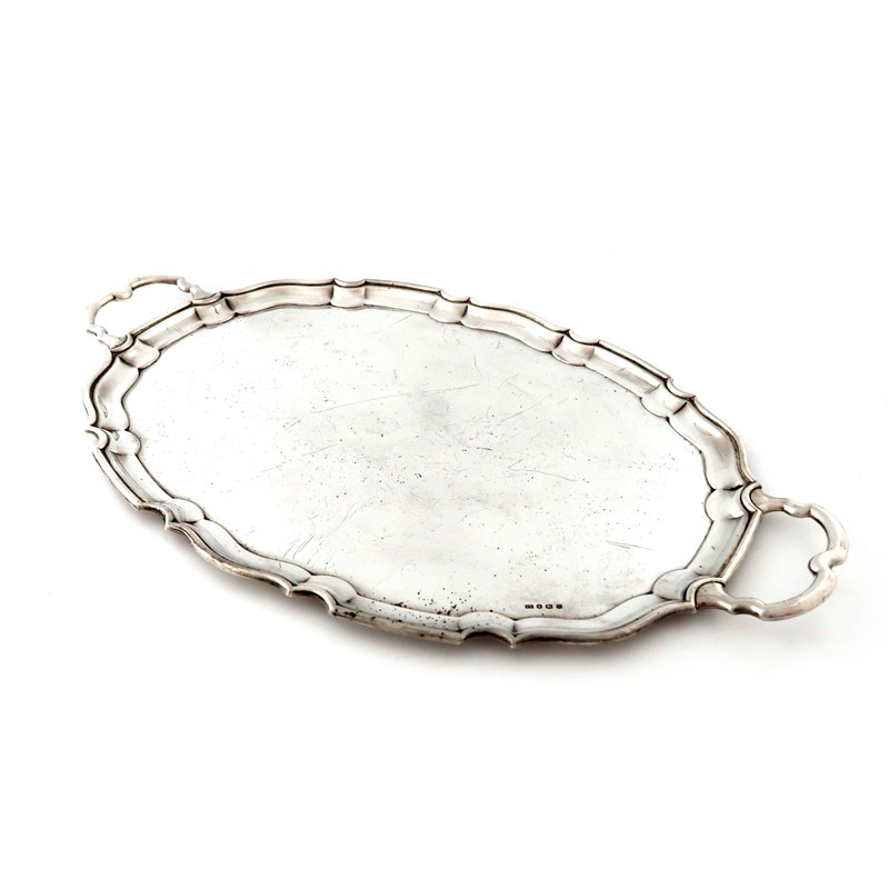 oval form, moulded border, length handle to handle 67.8cm, approx. weight 92oz.