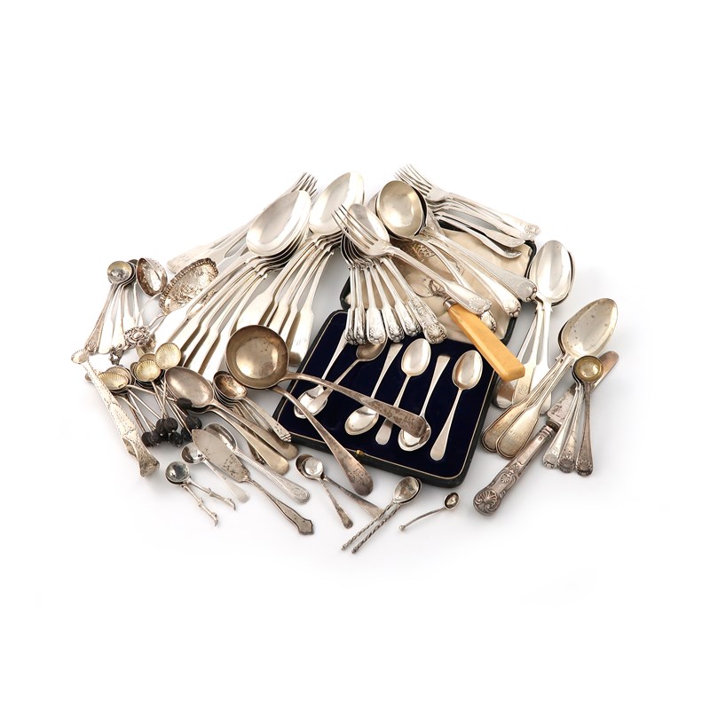 λA mixed lot of silver flatware