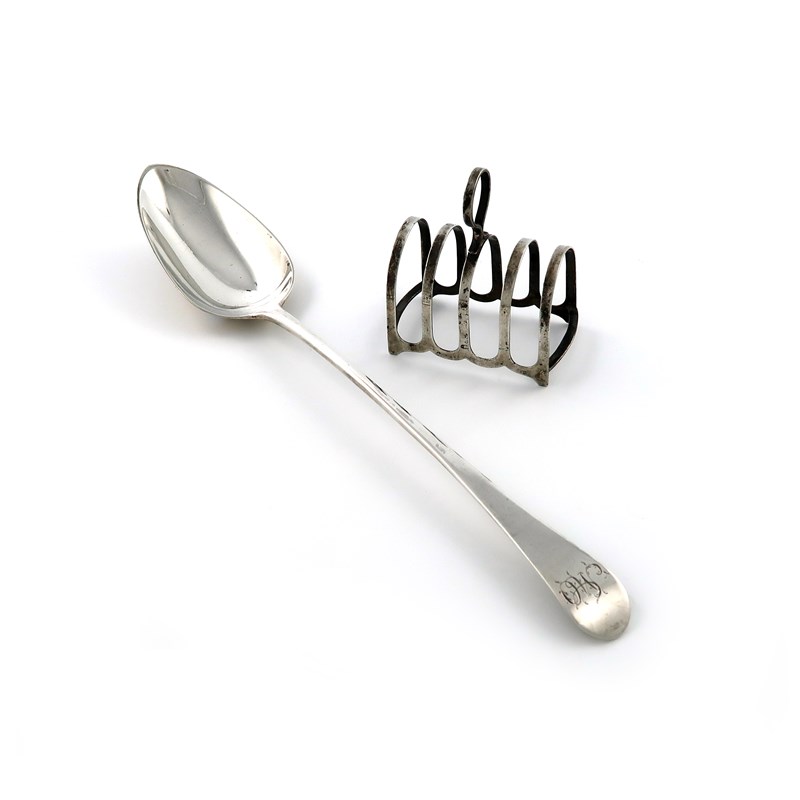 the terminal initialled, length 31.8cm, plus a silver toast rack, Sheffield 1938, approx. weight 4.9oz. (2)