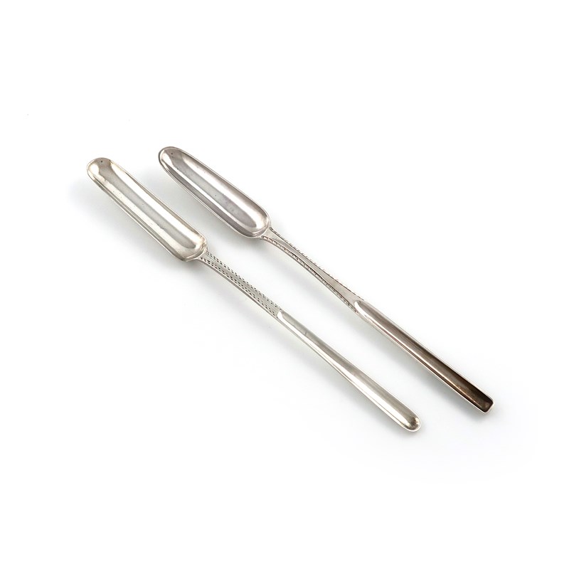 plain bowl, length 21.7cm, plus a George III silver Feather-edge pattern marrow scoop, by Thomas Chawner, London 1776, length 21.5cm, approx. weight 2.5oz. (2)