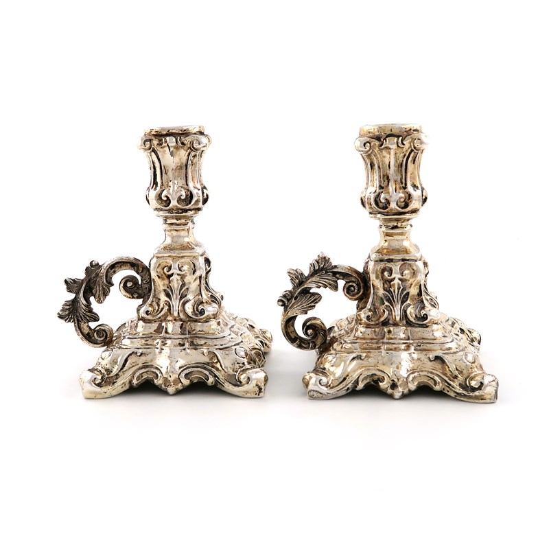 A pair of 19th century Austro-Hungarian silver chamber sticks,