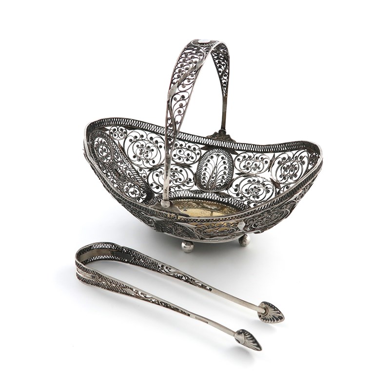 A 19th century continental silver filigree swing-handled basket