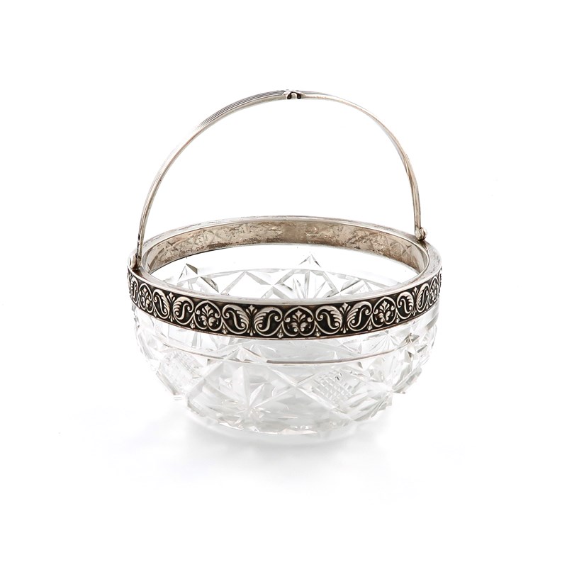 A late 19th century Russian silver-mounted swing handled glass sugar basket
