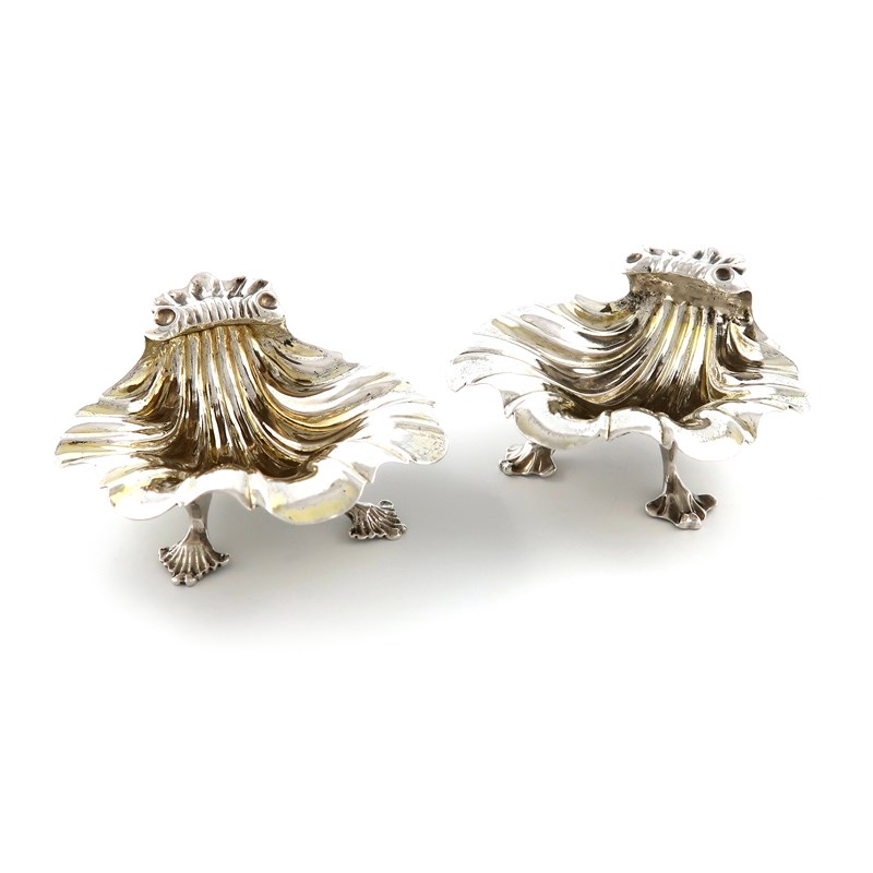 A pair of George III silver shell salt cellars