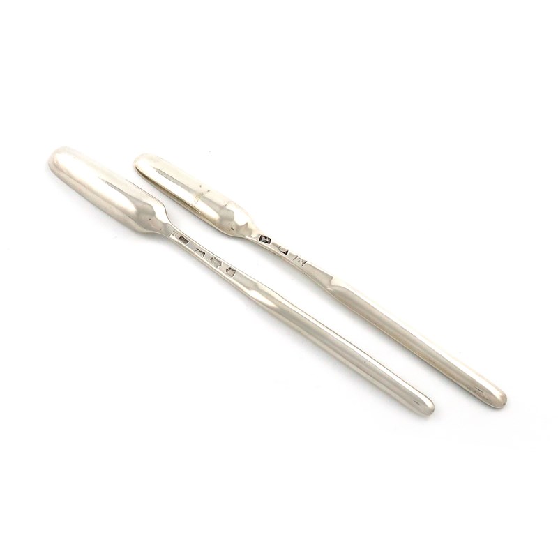 the reverse of the stem with 'H', length 23.1cm, and another George II silver marrow scoop, London 1727, conventional form, approx. weight 3.2oz. (2)