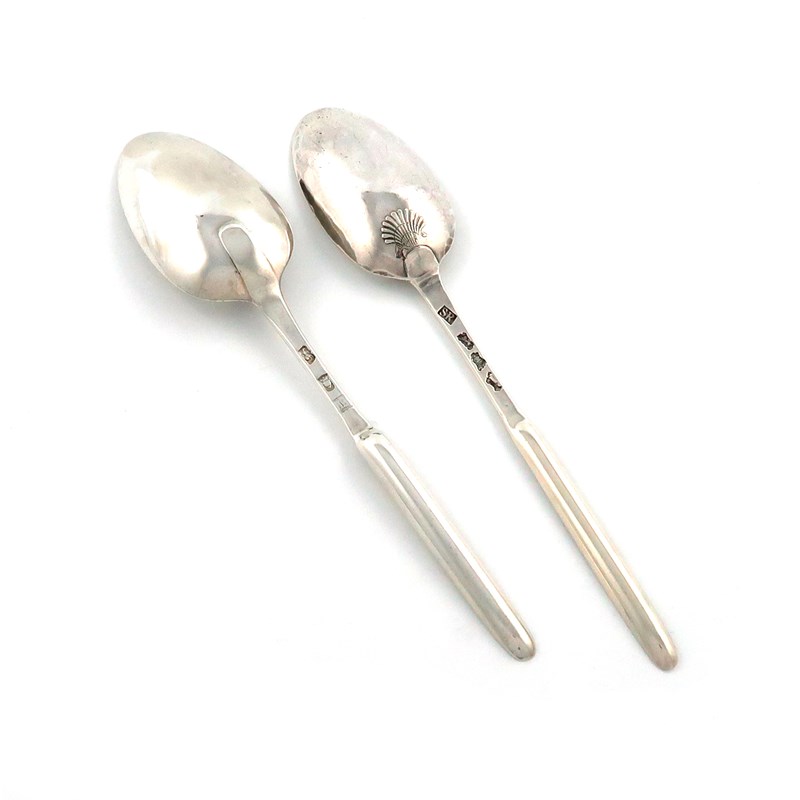the reverse of the oval bowl with a shell heel, length 21.8cm, plus a George III silver marrow spoon, London 1763, maker's mark possibly WW, approx. total weight 3.5oz. (2)