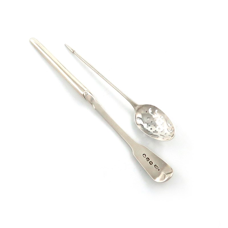 the terminal with script initials, length 17.5cm, plus an 18th century silver mote spoon, maker's mark WF or WE, the bowl pierced and with scratch initials 'I' over 'WRI' conjoined, approx. weight 1.2oz. (2)