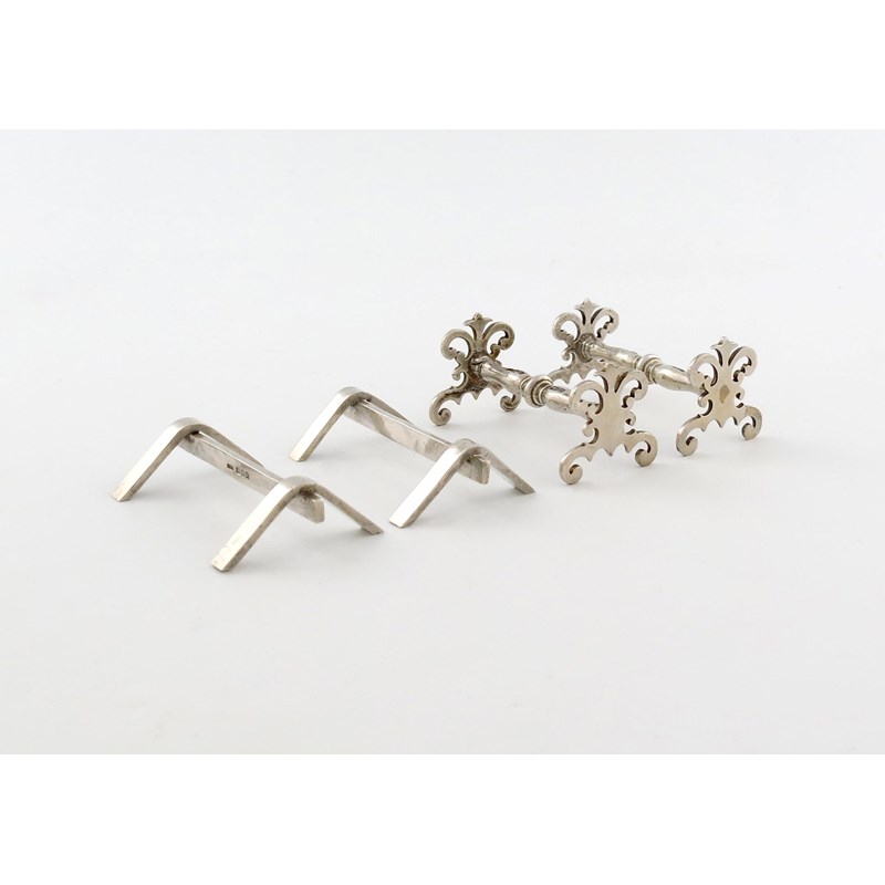 plain ingot form, plus a pair of modern silver knife rests, by Period Jewellery Manufacturing, Birmingham 1998, baluster form, pierced and scroll supports, length 6.8cm, approx. weight 4.5oz. (4)