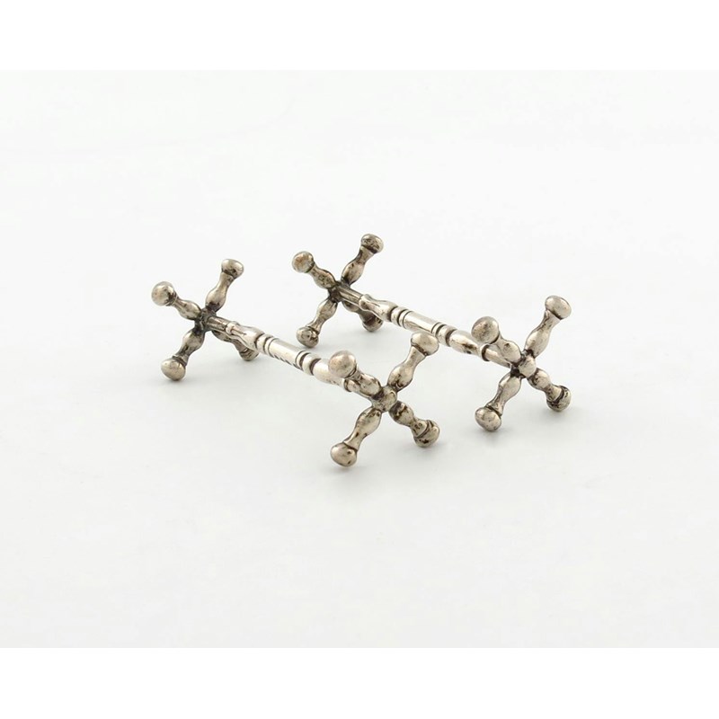 knopped baluster form, with ball finials, length 8cm, approx. weight 2oz. (2)