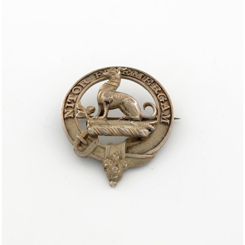 modelled as a seated greyhound with the motto 'NITOR ET EMERGAM', within a strap border, diameter 4.3cm.