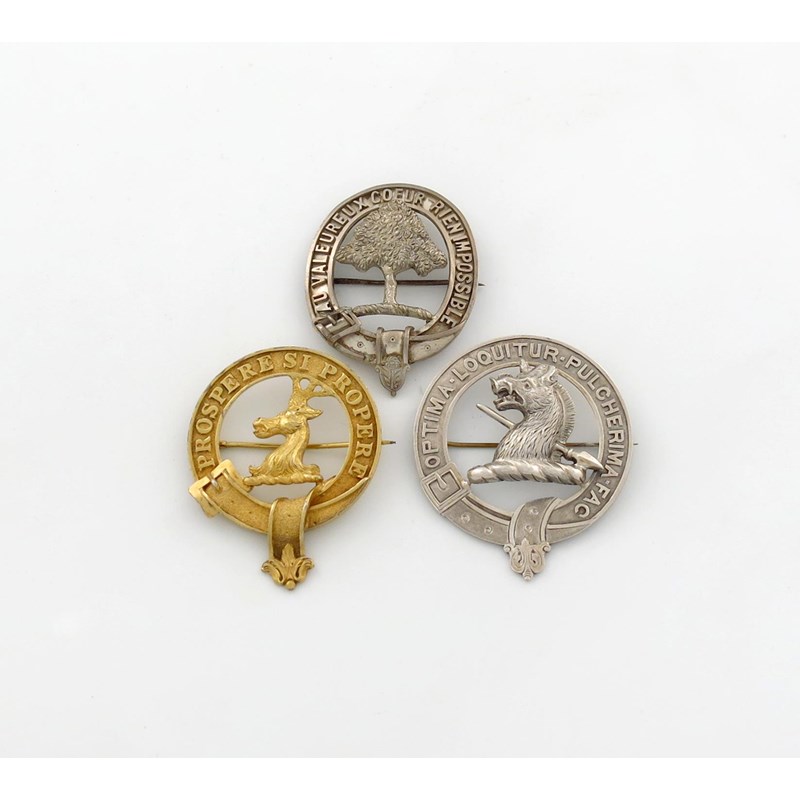 comprising: one for Peat, one for Messervy and one modelled as a boars head pierced with an arrow and with the motto' Optima Loquitur Pulcherima Fac', approx. diameter of largest 6.1cm. (3)