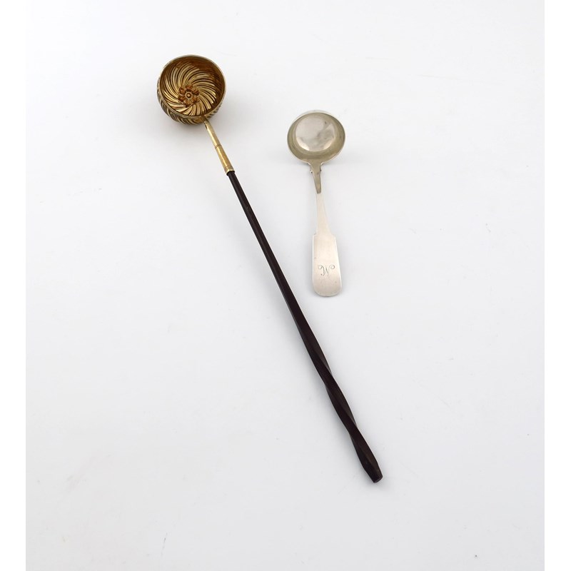 the terminal initialled, plus a silver-gilt toddy ladle, with a fluted circular bowl, twisted whalebone handle. (2)