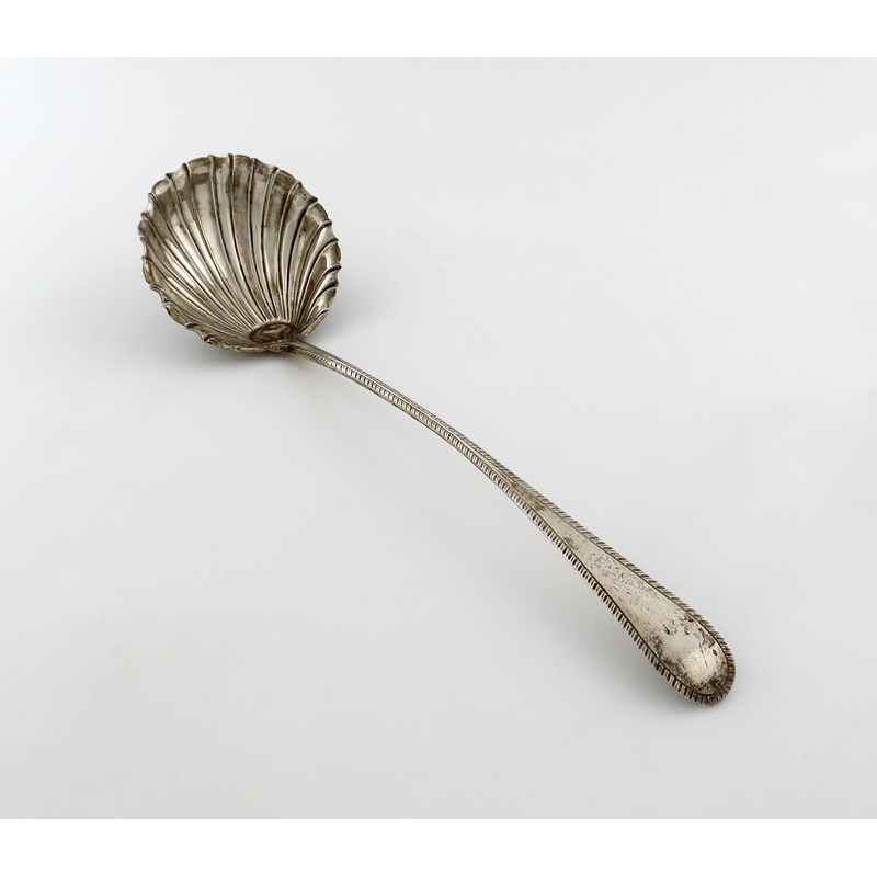 A George III Scottish silver Feather-edge pattern soup ladle,