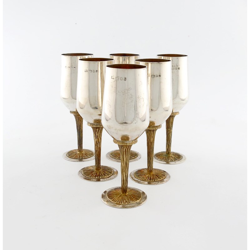 A set of six modern parcel-gilt silver goblets