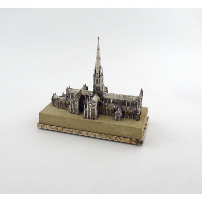 A modern commemorative silver model of Salisbury Cathedral,