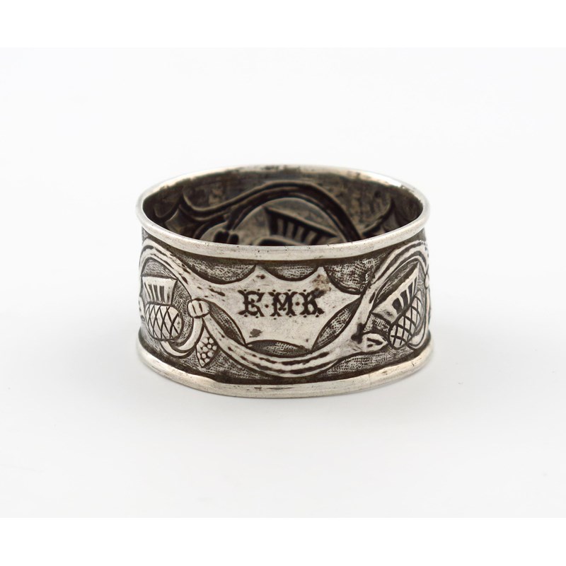 By The Keswick School of Industrial Arts, a silver napkin ring,