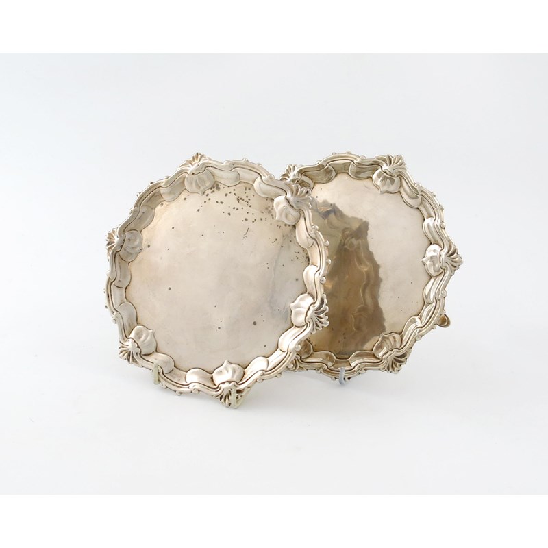 A pair of George II silver waiters