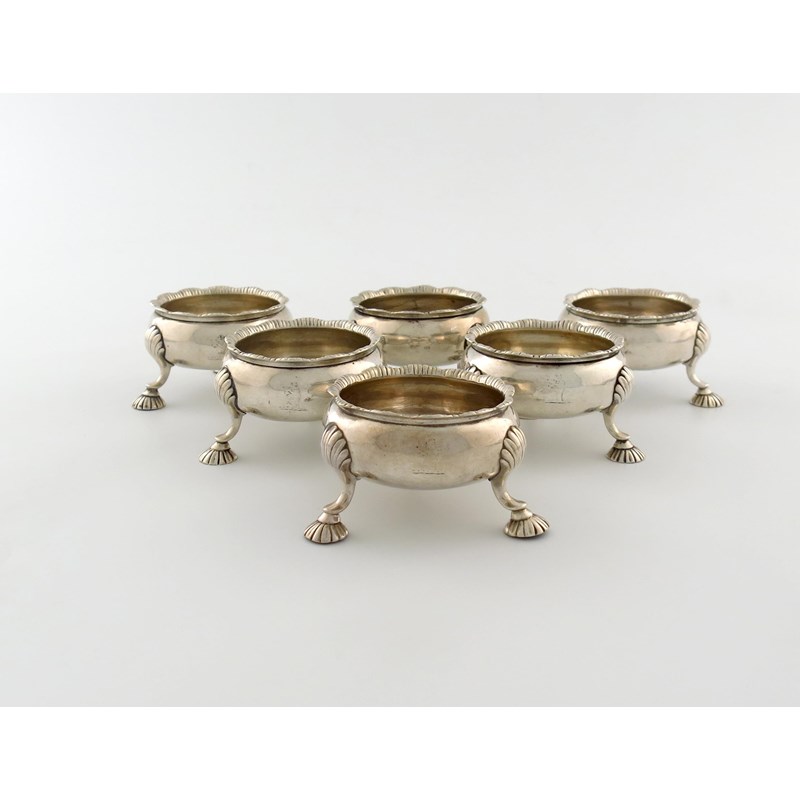 A matched set of six George II silver salt cellars