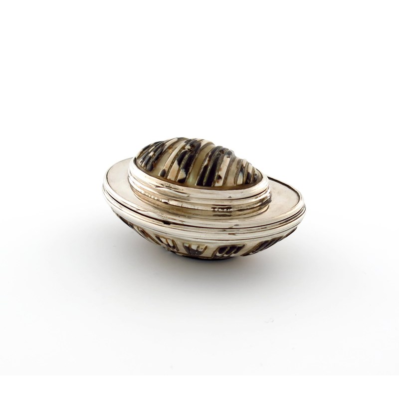 A George III silver mounted double shell snuff box,