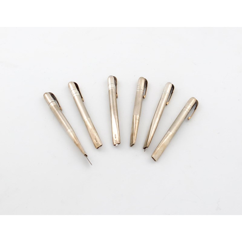 Six silver retractable pen knives