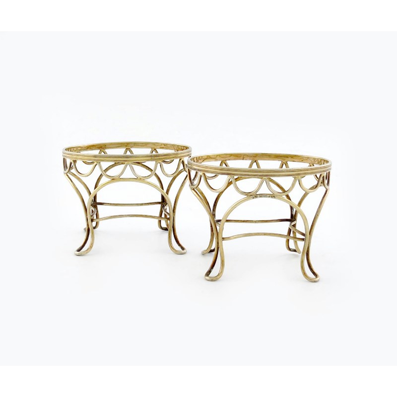 oval wire-work form, on four wire-work legs, length 10cm, height 7.5cm, approx. weight 6oz. (2)