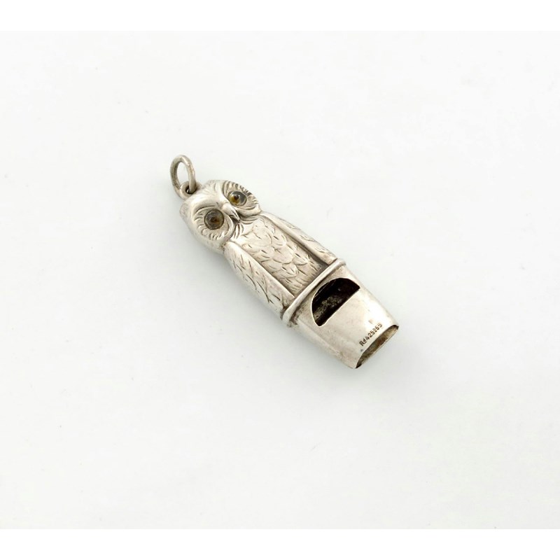 modelled as an owl, glass eyes, length 4cm, approx. weight 0.1oz.