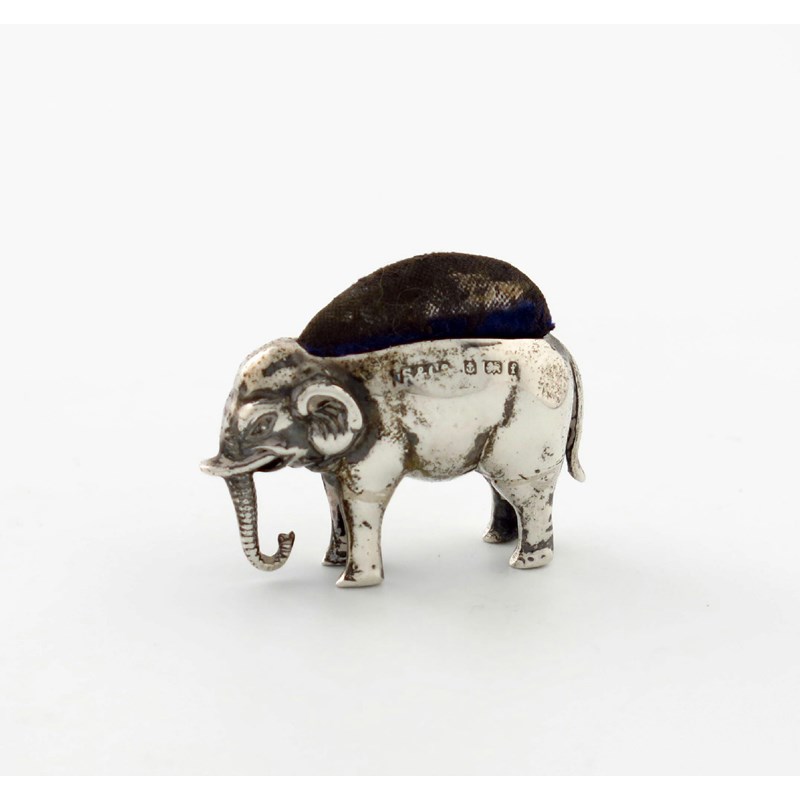 An Edwardian novelty silver elephant pin cushion