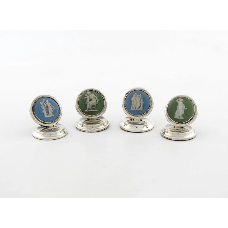 A matched set of four silver-mounted Wedgwood menu card holders
