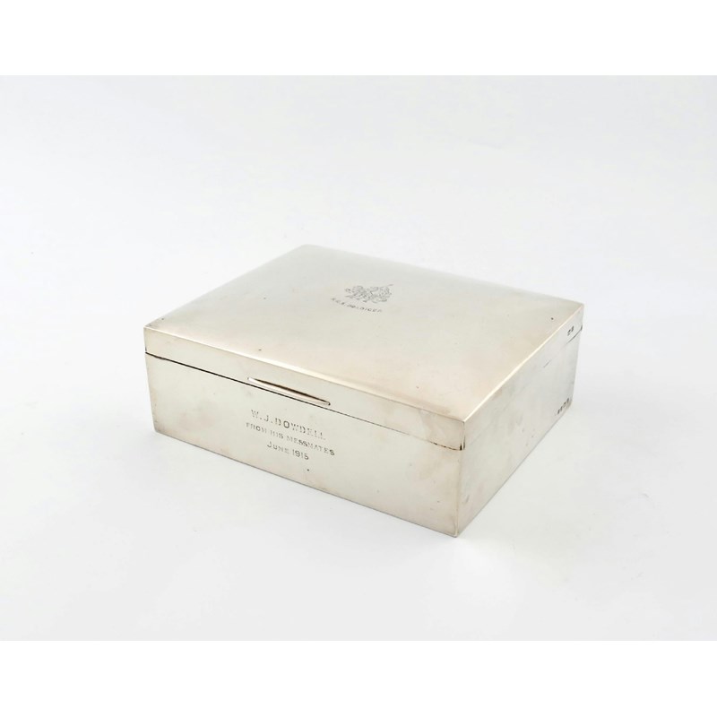 Naval interest, a presentation silver large cigarette / cigar box,