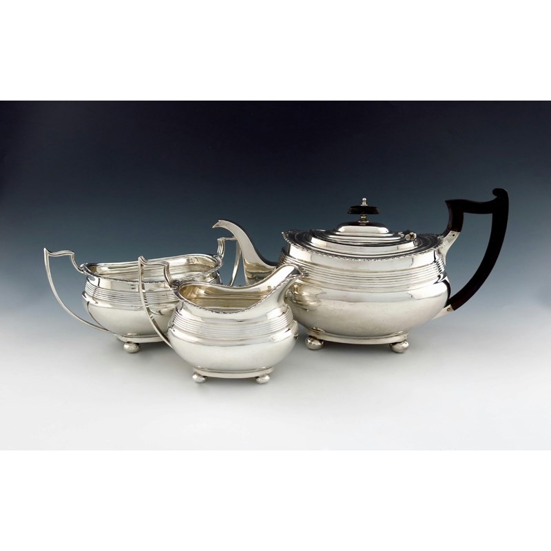 A three-piece silver tea set