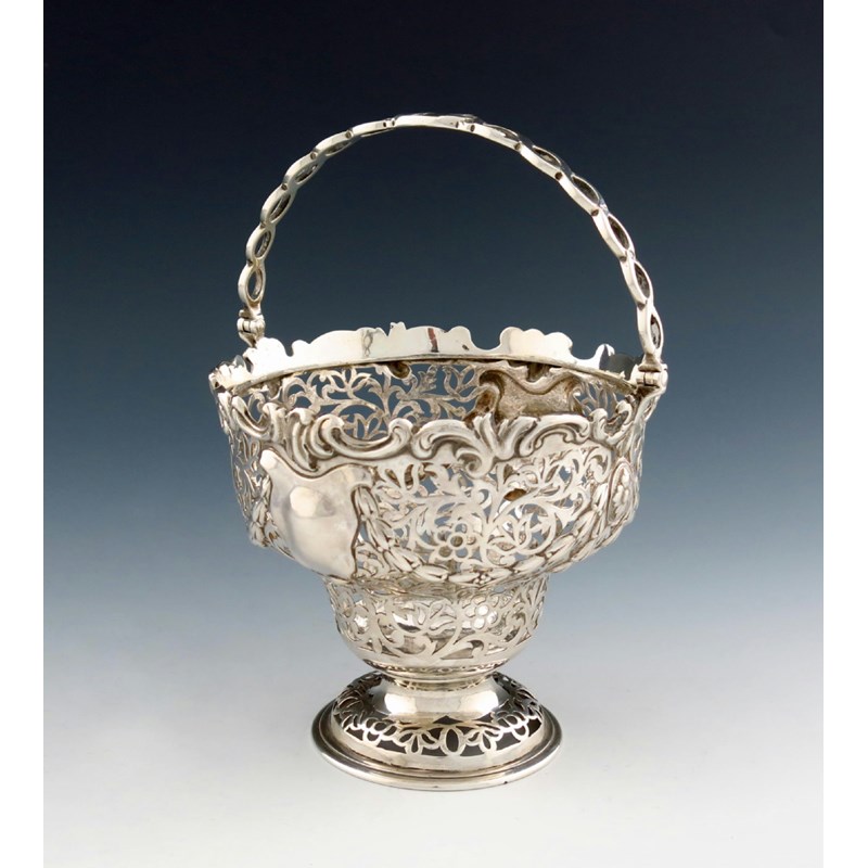 circular tapering form, pierced with foliate scroll decoration and embossed with swags, on a pierced circular foot, with a vacant cartouche, height 12cm, approx. weight 10.9oz.