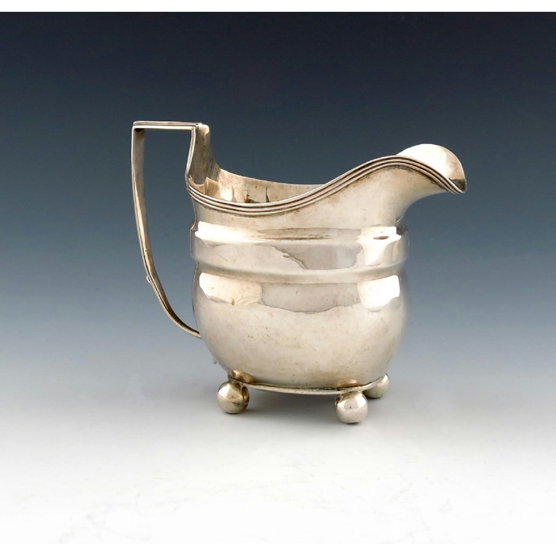 rounded rectangular form, scroll handle, on four ball feet, height 11cm, approx. weight 5.5oz.