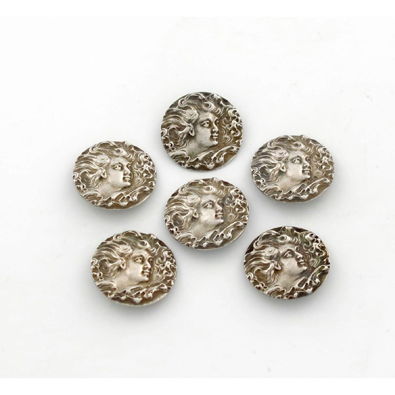 each depicting a girl's face with her hair circling round the whole circular disc, diameter 2.5cm, approx. weight 0.8oz.