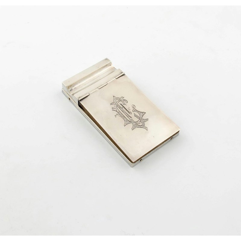 rectangular form, the hinged cover with a monogram, with a pen well, length 12.8cm.