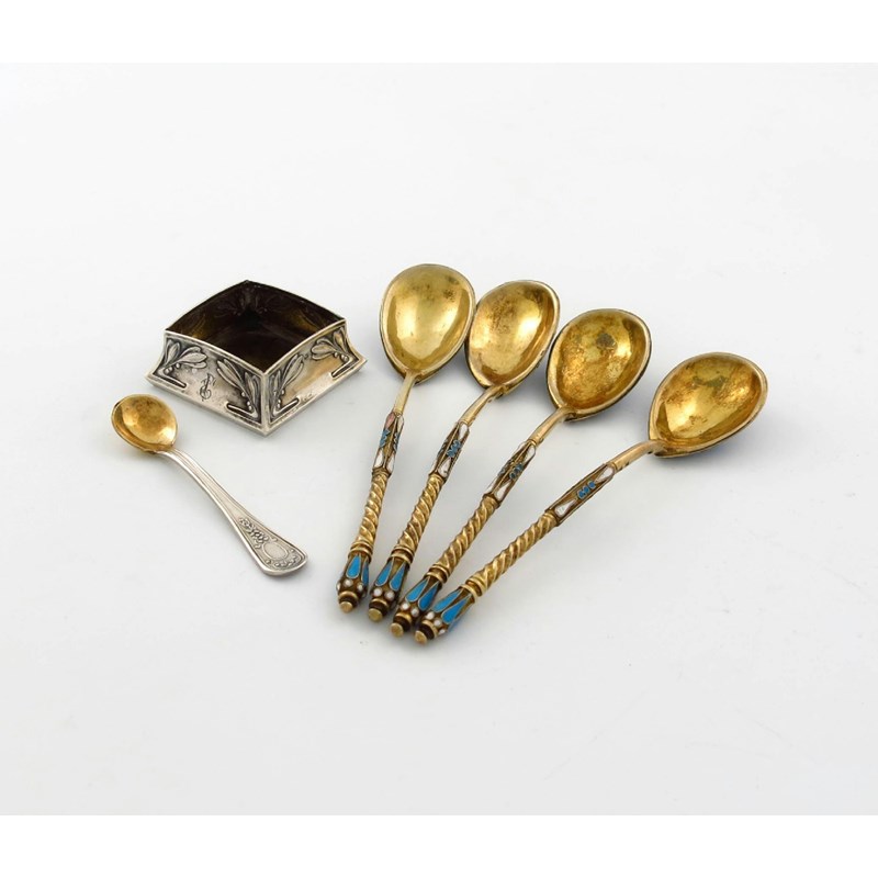 A set of four Russian silver-gilt and enamel spoons