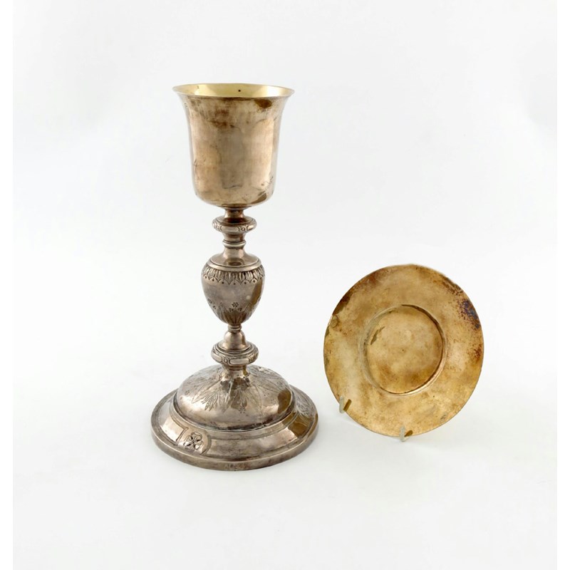 A 19th century French silver chalice and a silver-gilt paten