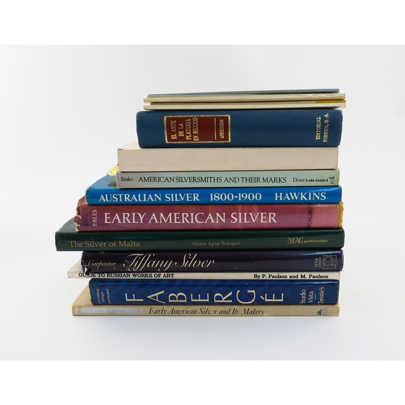 including: Gandy Fales, M., Early American Silver 1970; Hawkins, J. B., Australian Silver 1800-1900, 1973; Ensko, S. G. C., American Silversmiths and Their Marks, 1983 and various pamphlets, museum publications and other volumes. (qty)
