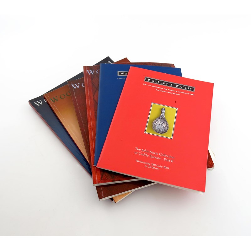 A quantity of Woolley & Wallis silver auction catalogues, including The John Norie Collection of Caddy Spoons, Part I and II, and others. (qty)