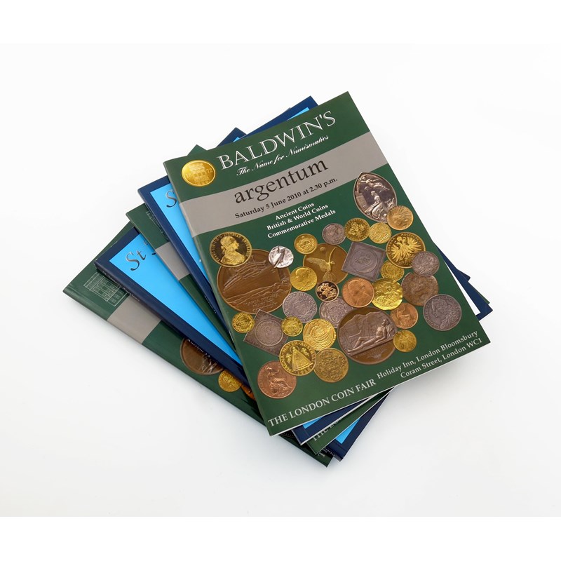 A quantity of auction catalogues relating to coins and medals, including Timothy Millett Limited and Baldwin's, and others. (qty)