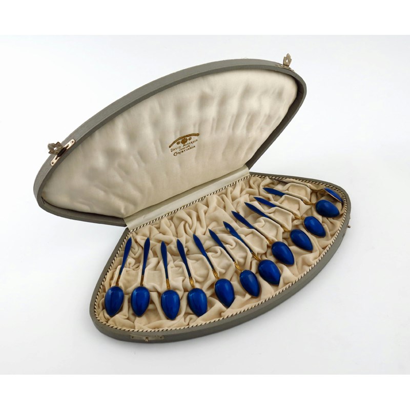A set of twelve Norwegian silver-gilt and enamel coffee spoons
