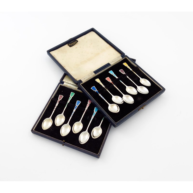 tapering terminals with vari-coloured enamel decoration, in two different cases, approx. weight 4oz. (12)