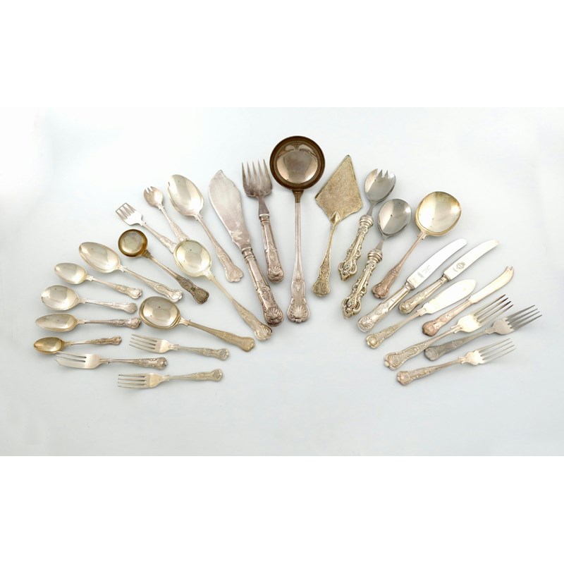 A matched electroplated canteen for twelve of Kings pattern flatware,