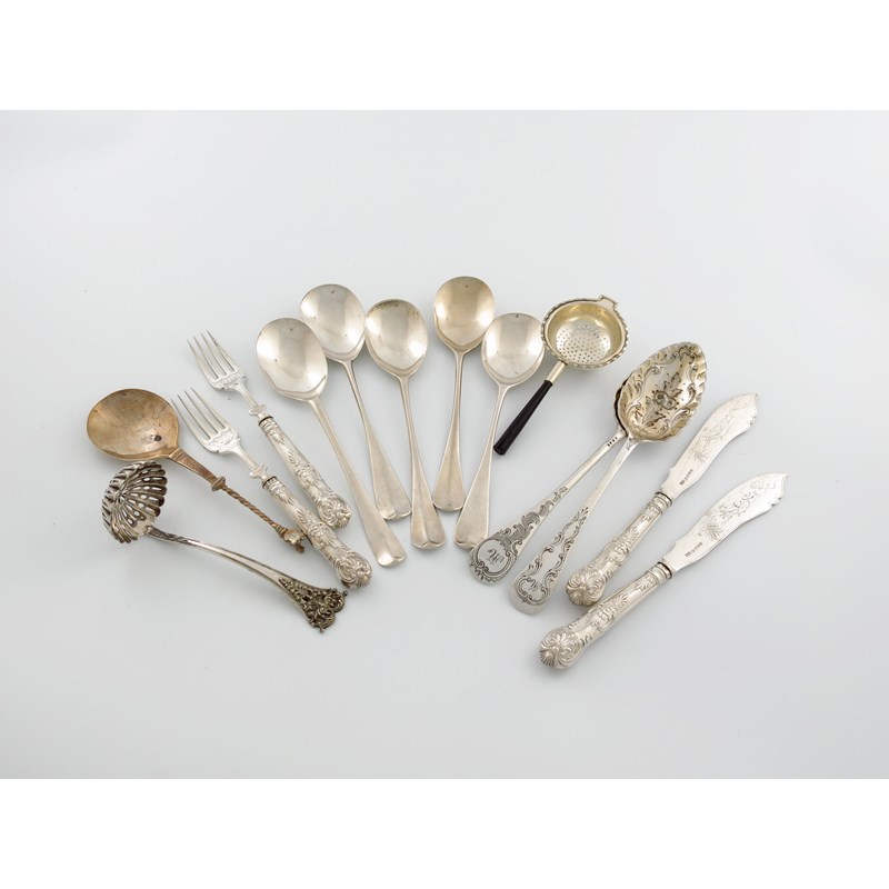 A mixed lot of flatware