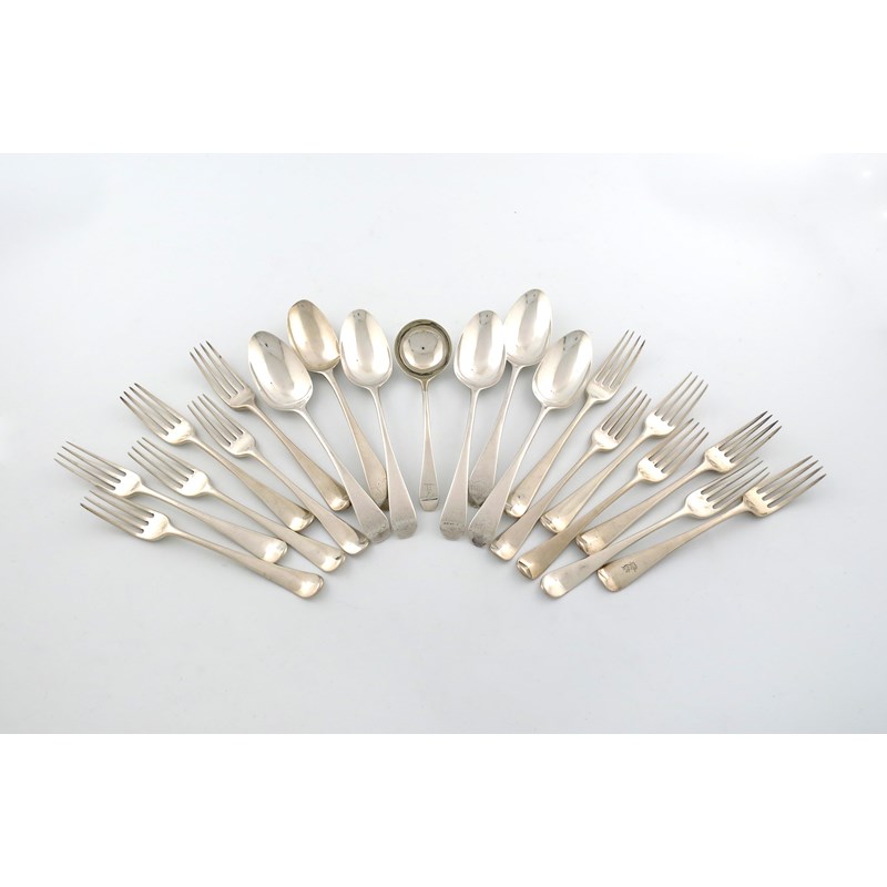 A collection of George III silver Old English pattern flatware