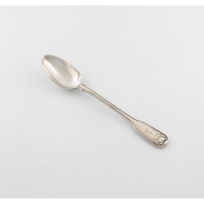 A George III silver Fiddle, Thread and Shell pattern basting spoon,