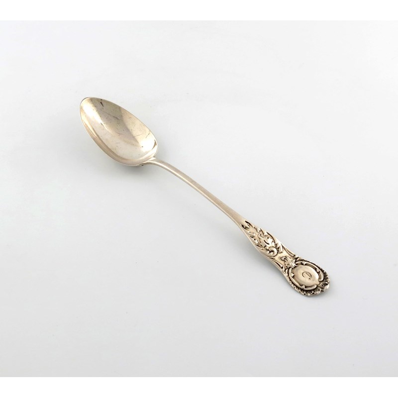 A Victorian Scottish silver King's shape with a Rococo terminal basting spoon