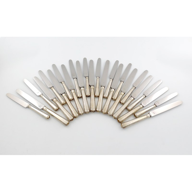 A set of twelve silver Feather-edge pattern table knives and twelve dessert knives,