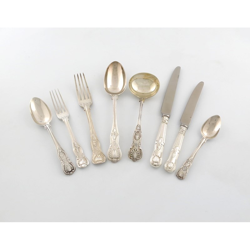 A matched Victorian and later silver King's pattern canteen for eight