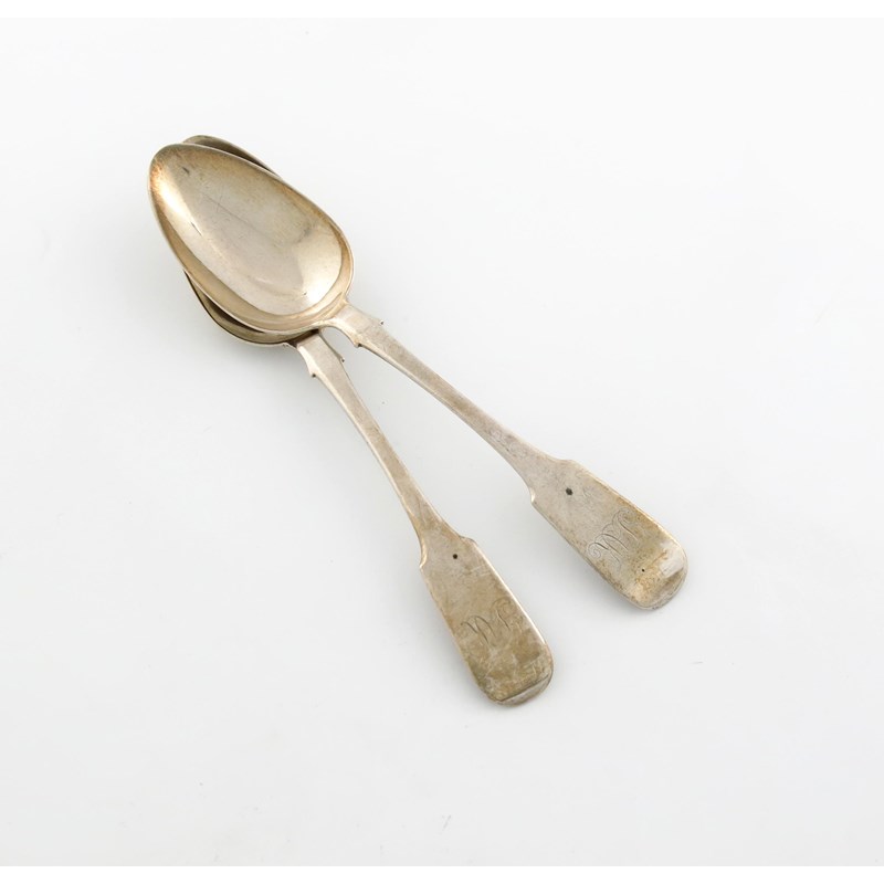 A pair of Canadian silver Fiddle pattern tablespoons,