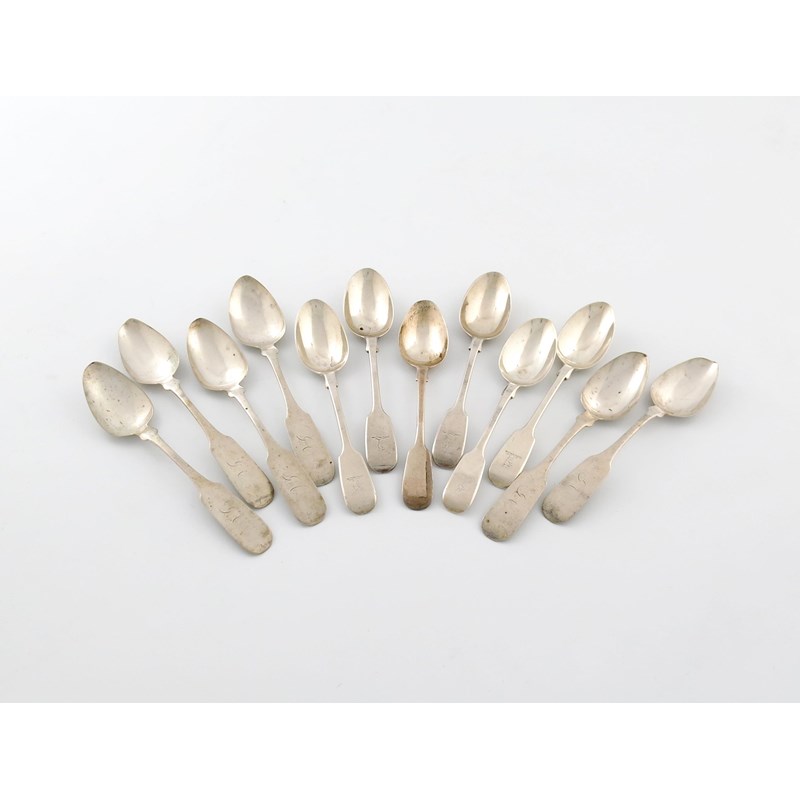 A set of five Victorian islver Fiddle pattern teaspoons